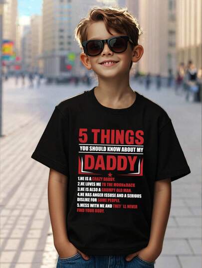 年轻男孩口号印花圆领休闲短袖 T 恤 - 黑色 - 查看 5