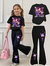 HELLO KITTY AND FRIENDS | SHEIN 女童可爱卡通图案圆领短袖T恤,夏季