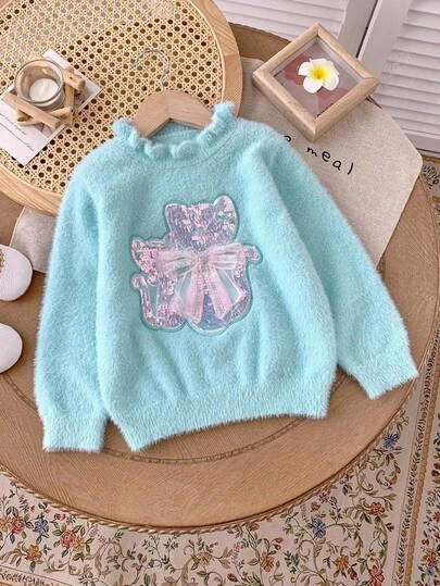 年轻女孩时尚百搭可爱亮片针织毛衣,秋冬 - 藍色 - 查看 6