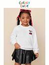 SHEIN 年轻女孩奶油白色、可爱豹纹蝴蝶结、卡通猫咪心形印花宽松休闲舒适圆领长袖运动衫,适合日常穿着、圣诞节、街头风格、居家、度假、舒适季节、秋冬装、轻松舒适、女童秋冬分层穿搭、时尚女孩、休闲装、儿童图案服装、秋冬服装、别致秋季、秋季新款、返校节
