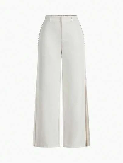 ZEYLAH 纽扣细节褶饰阔腿裤 - 白色 - 查看 1