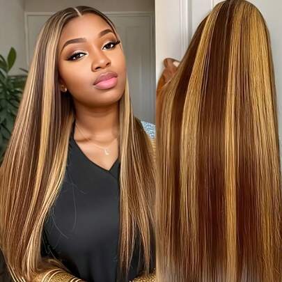 ZHENDEFA 360度蕾丝前假发,4/27蜂蜜金挑染蕾丝前假发,透明高清蕾丝前假发,预拔发际线,女士无胶蕾丝前假发 - S4/27 - 查看 7