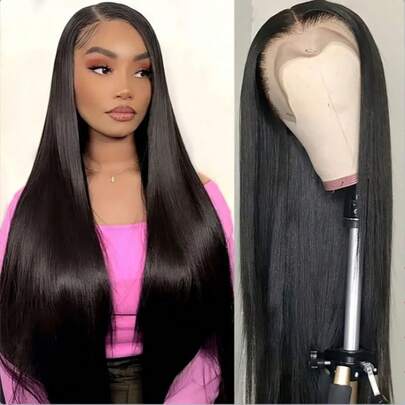 吹潮 200% 密度 13X6 高清蕾丝前假发 直发蕾丝前假发 真人混纺假发 自然蕾丝预拔毛蕾丝假发 带婴儿发 耳到耳瑞士高清蕾丝,打造自然逼真的万圣节造型 - 1B# - 查看 2