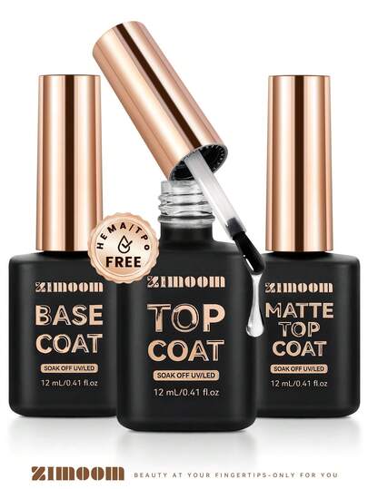 ZIMOOM 不含TPO和HEMA的12毫升亮油/底油,持久亮泽/丝绒哑光,透明凝胶指甲油,可卸除,UV/LED灯可擦,耐刮擦、耐磨损,适用于美甲沙龙和居家DIY美甲。 - 無色 - 查看 12