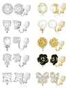 10对优雅时尚AAA+级立方氧化锆和仿珍珠蝴蝶/花朵/蝴蝶结夹式耳环,适合女性佩戴 - 适合日常佩戴、派对和节日礼物