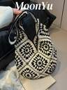 女士编织向日葵图案手提包,大容量软肩手提包,时尚优雅,适合度假