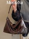 女士单肩包手提包流浪包新月包金属链条时尚个性大容量咖啡色挂件小包