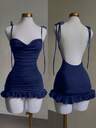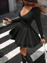 Zielony 优雅收腰长袖U领蕾丝边荷叶边下摆波点印花雪纺连衣裙,配有隐形拉链,适合秋冬季穿着。