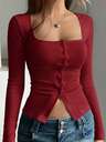Zielony ChicEase 女款 Y2k 简约休闲可爱复古美式风格方领纯色长袖时尚衬衫,春夏季,适合日常校园辣妹装扮和居家休闲装 T 恤