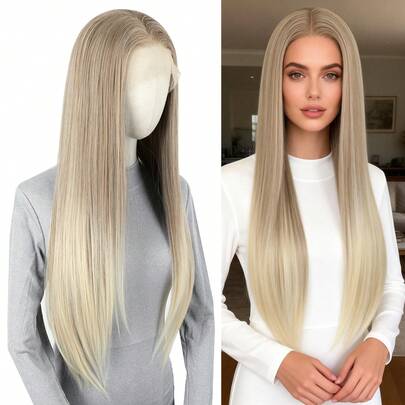 ZigZag Hair 13x4英寸渐变色合成蕾丝前假发,预先拔毛的自然发际线,无胶耐热纤维发丝,男女通用 - 彩色 - 查看 13