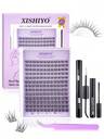156片C型卷翘睫毛簇高容量套装,自然睫毛嫁接套装,纤细睫毛簇套装,156片睫毛嫁接套装,10-18毫米睫毛簇单片套装,含睫毛卸除剂、粘合剂、封口剂和镊子