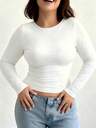 纯色简约长袖方领修身弹力面料黑色 T 恤性感火辣女孩风格派对约会四季适应日常外出。
