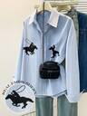 美式条纹休闲宽松衬衫,印有趣味骑士图案
