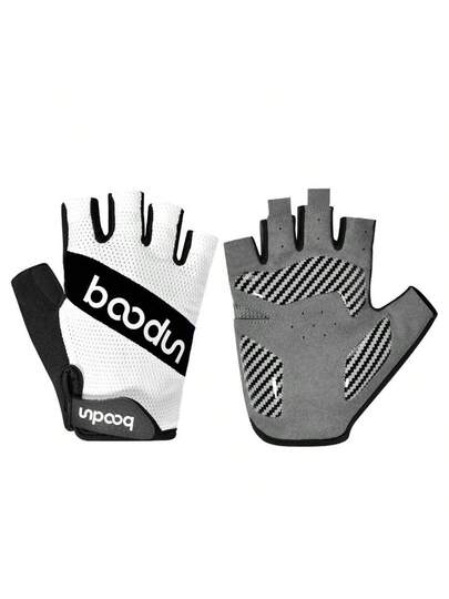 boodun 1双短款半指骑行手套,户外运动防滑耐磨减震透气高弹贴合舒适自行车运动手套 - 黑與白 - 查看 1