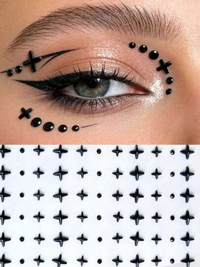 唇钉、眉钉、眼部彩妆贴纸套装,防水防汗,节日派对必备,面部装饰宝石,闪光临时纹身,适合舞台妆容
