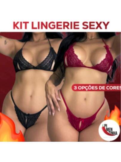 Kit With 2 Lace Lingerie Sets With G-String – Apressadinha Intimate Fashion Set - 彩色 - 查看 1