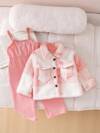新生女婴可爱毛茸茸耳朵装饰心形图案拉链连帽连体衣,秋冬