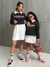 SHEIN Leap Crew 青少年女孩复古字母和数字徽章图案休闲中长连衣裙,时尚运动针织款式,短袖,适合夏季凉爽服装系列,女孩 Chroma 精选,返校韩式风格,轻松运动装,儿童图案 T 恤,运动休闲,夏季服装,毕业季必备