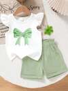 Dazy Kids 两件套蝴蝶结装饰短袖短裤套装,适合小女孩、女孩夏季服装