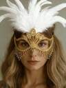 银色羽毛水钻流苏面具威尼斯女士派对化妆舞会面具奢华水晶面部珠宝化装舞会服装眼罩