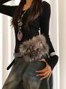 1件女士灰色针织围巾,采用编织和植绒条纹设计,纤维材质