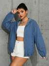FRIFUL 女士纯色休闲拉链宽松长袖连帽牛仔夹克