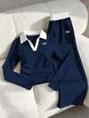 SHEIN 青少年女孩休闲简约赛车运动服“洛杉矶”79 图案印花条纹短袖 T 恤和短裤套装,适合夏季