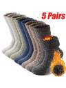 5双随机混色加厚保暖袜,男士中筒防臭保暖羊毛袜,女士冬季长筒羊毛袜