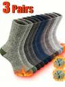 3双装男士加厚保暖中筒袜,保暖毛巾袜,适合户外活动、徒步、骑行、跑步,父亲节礼物