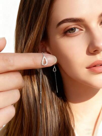 eTel LiKe 1对时尚简约镂空水滴长流苏耳环 - 銀色 - 查看 10