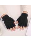 1 双女士纯色休闲针织露指手套,时尚简约图案腈纶半指手套,保暖手套,适合秋冬季节、日常佩戴、工作穿着。