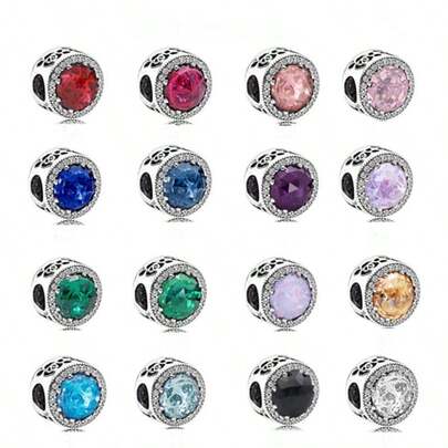 falinne 2026新款欧式圆形锆石串珠,16色玫瑰花诞生石吊坠,适合手链,女士DIY首饰制作材料