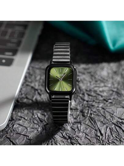 gedi 1 件女士新款白色不锈钢表带,精致方形表盘,时尚白色指针休闲精致极具吸引力的女士腕表,校园必备防水石英表,适合派对通勤旅行和日常佩戴 - 綠色 - 查看 1
