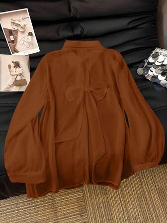 SHEIN Clasi 休闲白色透明衬衫,带蝴蝶结装饰