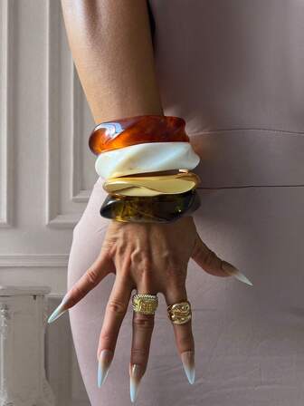 4 件袖口手镯、金手镯、宽手镯、粗手镯、手镯套装、宽手镯、手镯、适合工作、日常、派对、宴会、舞会装饰、复古和魅力手镯,适合女士