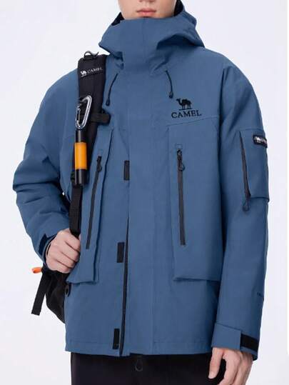 CAMEL CROWN 男士户外三合一防风外套,防风防水,适合暴雨和徒步旅行 - 晶石藍 - 查看 1