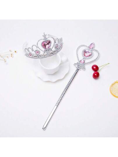 2入組塑膠皇冠頭帶&髮夾套裝,冰雪皇冠設計適用於兒童的公主配件,韓國版 - 粉色 - 查看 2