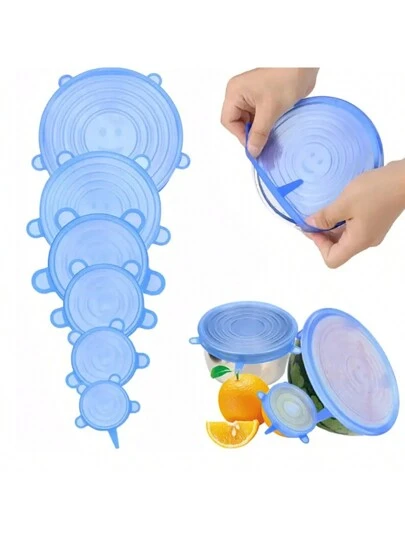 6入組矽膠彈性蓋,食物碗蓋,可重複使用的食品保鮮蓋,可拉伸的多功能水果和蔬菜保鮮蓋,密封保鮮蓋,水果保持器,收納容器,可重複使用,廚房用品 - 查看 5