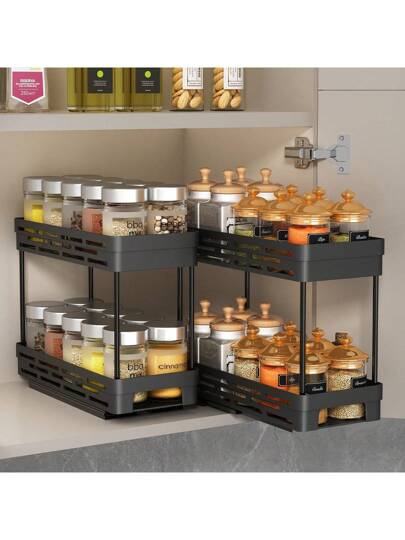 1個雙層塑料香料架,可拉出設計,廚房櫥櫃組織收納架,適用於調味料和香料 - 白色 - 查看 1