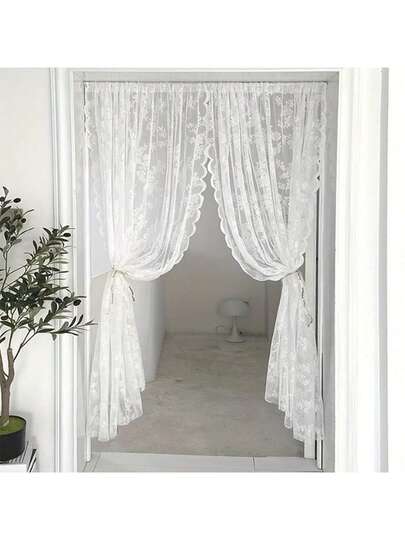 1入組蕾絲紗簾,花錦蕾絲窗簾,老式維多利亞風格客廳花卉窗簾面板掛袋式 - 白色 - 查看 10