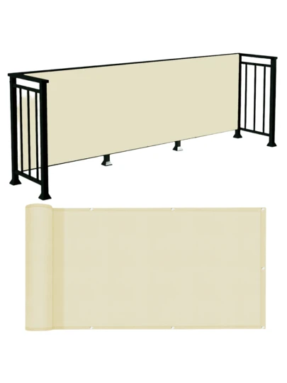 不透明隱私圍欄,防水陽台隱私屏幕保護器-適用於公寓欄杆、室外露台、甲板、門廊(米白色) - 米色 - 查看 1