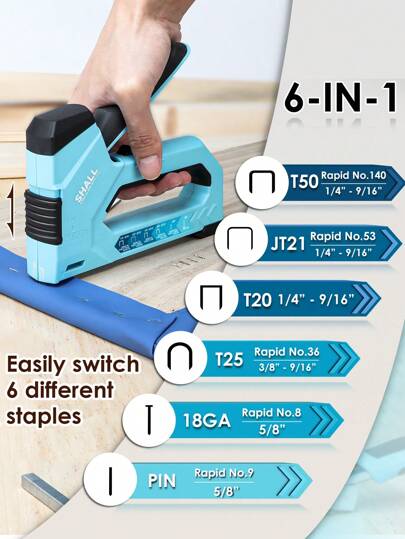 SHALL 6合1重型釘槍-具有4000個釘子計數的軟墊釘槍,手動細釘槍和釘子拆除器,適用於木材、手工藝、織物、電纜、裝飾、家具等 - 均碼 - 查看 6