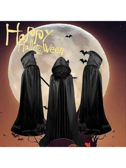 1 件万圣节斗篷黑色死亡斗篷女巫恶魔服装吸血鬼派对斗篷色调材料颜色明亮触感丝滑 - 彩色 - 查看 1