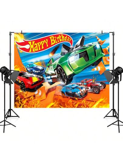 1 件卡通汽车主题生日快乐派对背景横幅,82.7 * 59.1/59.1 * 39.4/39.4 * 29.5 英寸摩托车玩家生日装饰背景,适用于生日派对、蛋糕桌横幅、拍照亭、蛋糕桌横幅派对背景装饰道具用品礼物 - 彩色 - 查看 1