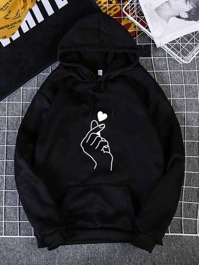 Sweatshirts Drawstring HEART FINGER HOODIE Figures Casual Cute - 黑色 - 查看 1