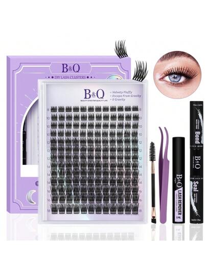 B&Qaugen B&Quagen Lash Clusters Kit Natural Eyelash Extension Kit For Beginners Z01 144 PCS Wispy Eyelash Extension Kit 8-18 Mixed Cluster Eyelash Extensions Kit D Curl Diy Lash Extension Kit At Home(Kit,Z01) - 黑色 - 查看 1