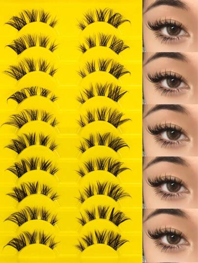 10 对优质猫眼假睫毛,D 形自然造型,柔软舒适闪亮眼睛,纤细卡通睫毛延长,透明茎动漫风格日韩妆狐狸眼睫毛,适合初学者,可重复使用 - 节省化妆时间,适合日常和派对使用,是各种节日的绝佳礼物选择 - 眼尾拉長款 - 查看 7