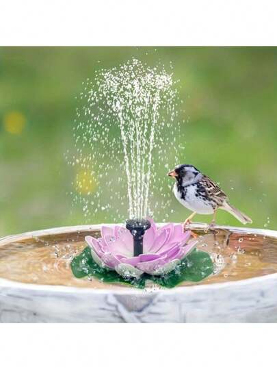 6 喷嘴浮动太阳能花喷泉、鸟浴装饰、太阳能供电、免工具安装、适用于花园池塘 - 彩色 - 查看 1