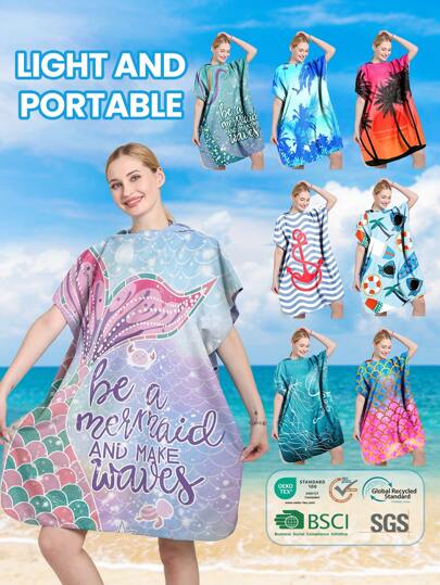SHENG CHUN 1 件户外便携式连帽斗篷,棕榈树、美人鱼、鲨鱼、锚、渐变鱼鳞印花,超细纤维速干柔软男女通用斗篷,情侣款,无袖长袍,披肩,非常适合游泳、健身、旅行、海滩、冲浪、潜水夏季、假日家居浴室装饰沙滩装返校 - 彩色 - 查看 10