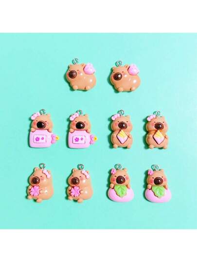 10 件各式可爱粉色水豚设计树脂珠宝制作配件,适用于吊坠、耳环、项链、手链、钥匙扣、包包饰品、DIY 工艺用品 - 混裝粉紅色系水豚 - 查看 5